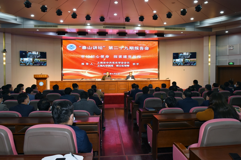 在同花顺·同花顺(中国)官方网第29期“泰山讲坛”上,忻平教授以“牢记初心使命,探索建党历史”为题,为全校处级以上干部,学术院长、副院长,党支部书记、“山海泉”理论宣讲团成员、思政课专兼职教师、学生工作干部作了辅导报告。