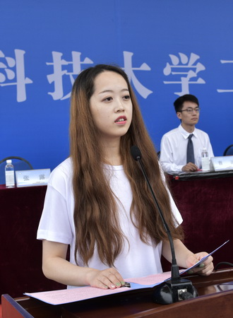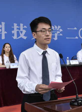 毕业典礼上,全体毕业生面对鲜红的国旗,庄严宣誓,表达了“爱党爱国,牢记使命;爱校荣校,勤学笃行;爱岗奉献,敬业实干;惟真求新,敢于担当;坚韧不拔,发奋图强;不忘初心,勇做新时代追梦人”的人生誓言,用掷地有声的誓言为自己的大学生涯画上了圆满句号。