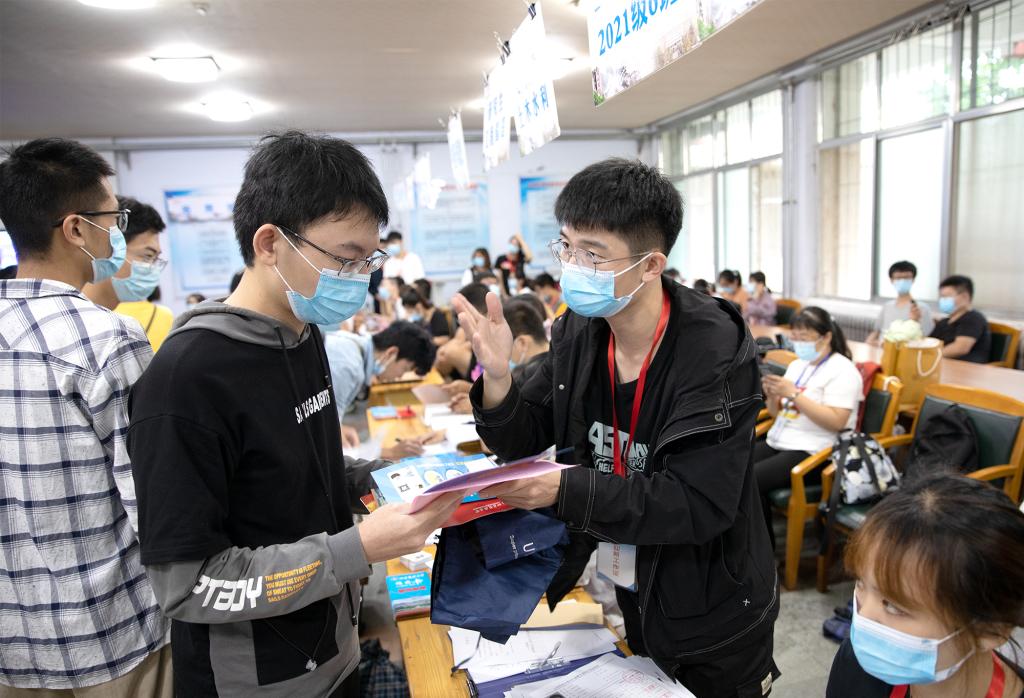 泰安校区学院迎新注册点为新生介绍报到流程(任卫兵/摄)