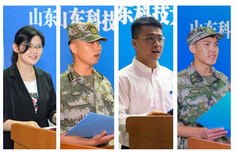 泰安校区典礼上,泰安校区管委副主任方亨福宣读军训决定。军训教官代表张进、教师代表刘新颖、研究生代表陈文韬、本科生代表王长坤分别发言。