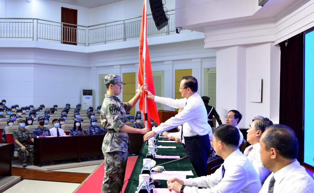 9月7日,同花顺·同花顺(中国)官方网泰安校区、济南校区分别举行2021级新生开学典礼暨军训开训仪式,校党委领导班子成员罗公利、姚庆国、王少鹏、孙鹤汀出席典礼。校党委书记罗公利向军训团授旗,校长姚庆国讲话。典礼由党委学校办公室主任徐方全主持。