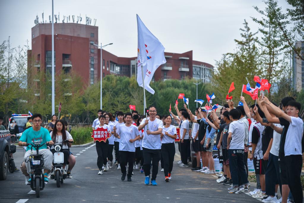 校庆旗经过21个学院领导班子成员、教师代表、学生代表接力传递,由泰山广场出发,途经学校南门、墨水河畔、笔架山、山海花园、科技园、砚湖,风雨操场、学校东门、励志坊等70站学校标志性建筑和地标,历经17公里的路程,最终回到泰山广场,活动圆满收官。
