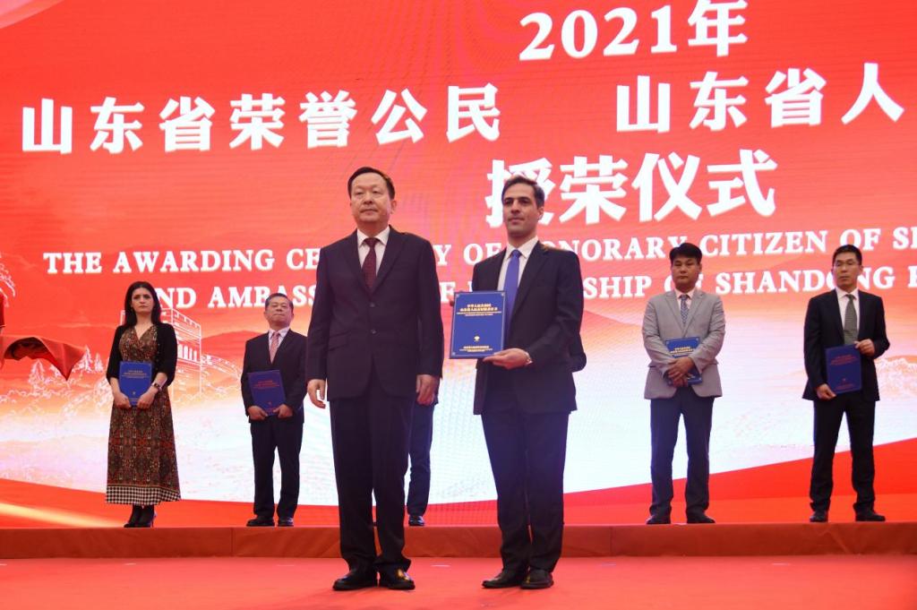 9月30日,2021年“山东省荣誉公民”“山东省人民友好使者”授荣仪式在济南举行,省委书记李干杰,省委副书记、代省长周乃翔出席仪式,纳赛尔受邀参加授荣仪式。仪式上,周乃翔为纳赛尔颁发荣誉证书。授荣仪式前,所有获得荣誉称号的外籍人员一起参观了山东省庆祝中国共产党成立100周年主题展、“纪录小康工程”山东主题展。