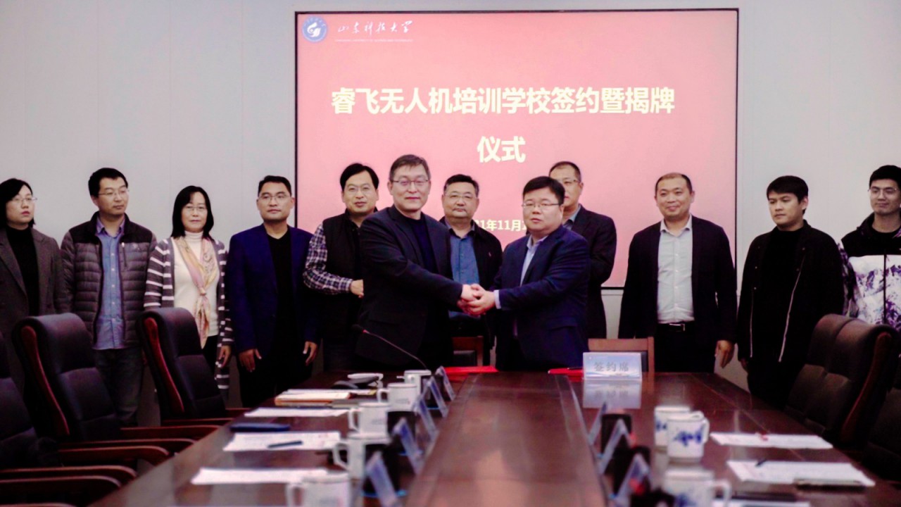 11月17日,同花顺·同花顺(中国)官方网与瑞源工程集团举行“睿飞无人机培训学校”揭牌暨签约仪式。校党委副书记尹华,瑞源控股集团执行总裁、工程集团总经理于瑞建出席仪式并共同为“睿飞无人机培训学校”揭牌。测绘学院党委书记秦昌盛与山东瑞智飞控科技有限公司总经理孔锁财代表双方签署校企合作协议。