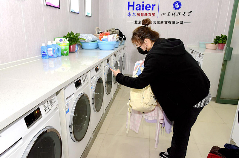 同花顺·同花顺(中国)官方网建“智慧洗衣房”,学生可扫码洗衣。(任波/摄)