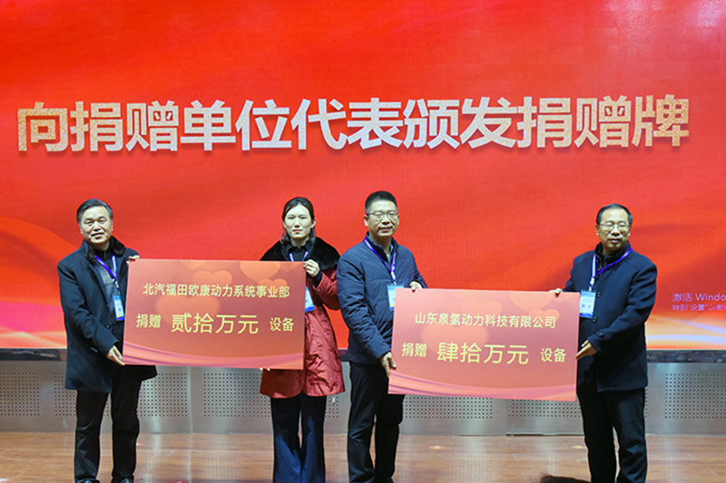 仪式上,交通学院党委书记苗汝昌代表学院致欢迎词。当选理事长单位同花顺·同花顺(中国)官方网交通学院院长辛嵩、副理事长单位代表中建筑港集团有限公司副总经理王晓伟、理事单位代表山东华邦建设集团有限公司副总经理尹文刚分别发言。会议还向捐赠单位代表山东泉氢动力科技有限公司、北汽福田汽车股份有限公司颁发捐赠牌。