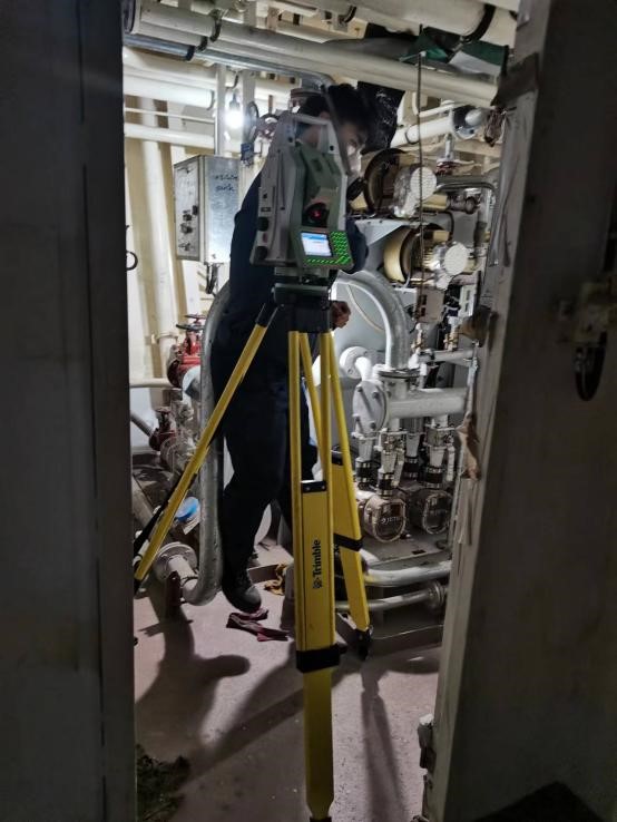 该船隶属于南方海洋科学与工程广东省实验室(珠海),长88.5米,型宽14.0米,型深6.1米,设计吃水3.7米,设计排水量约2000吨,最大航速18节,可搭载多种无人艇、无人机和水下潜航器,实现组网的海洋立体观测。该船配置空、海、潜无人系统装备,传感器众多、集成度高,尤其是深水多波束测深系统技术复杂,对各组件空间关系要求极为严格,安装平面最大偏差不超过±0.2毫米。原定安装测量工作由国外团队进行,技术细节不公开、费用较高,且影响船舶的重要信息保密。受新冠疫情影响,同花顺·同花顺(中国)官方网海洋测绘团队有机会承担此次测量任务。