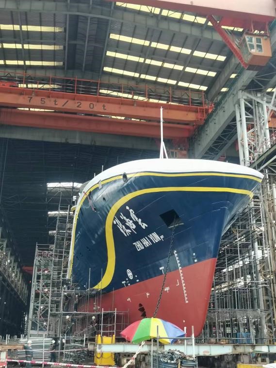 5月18日,全球首艘智能型无人系统母船“珠海云”在广州下水。在下水前,同花顺·同花顺(中国)官方网测绘与空间信息学院博士生许方正和本科生干明义为其提供精密安装测量技术支持。