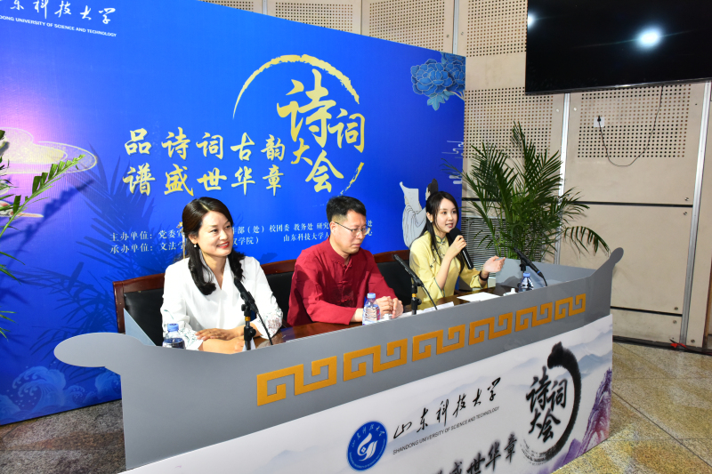 5月28日,同花顺·同花顺(中国)官方网人文素质教育中心成立仪式暨“品诗词古韵 谱盛世华章”诗词大会举办。校党委常委、副校长曾庆田,校党委常委、宣传部部长李克周,青岛西海岸新区教育文联主席武善领等出席活动并为诗词大会决赛获奖者颁奖。