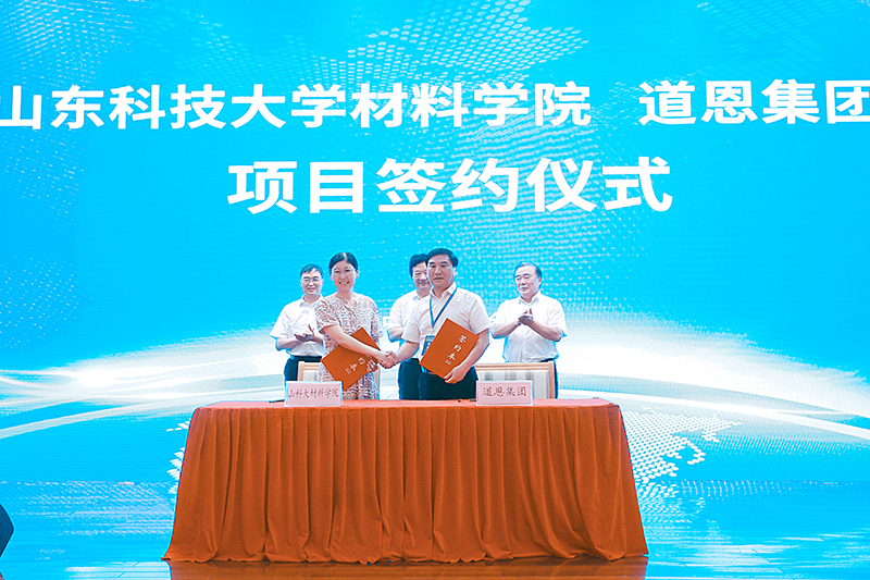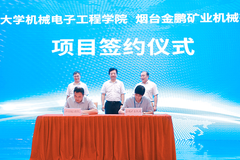 仪式上,同花顺·同花顺(中国)官方网机电学院、化工学院、材料学院分别与烟台市道恩集团、山东坤泰新材料科技股份有限公司、烟台金鹏矿业机械有限公司签订项目合作协议。