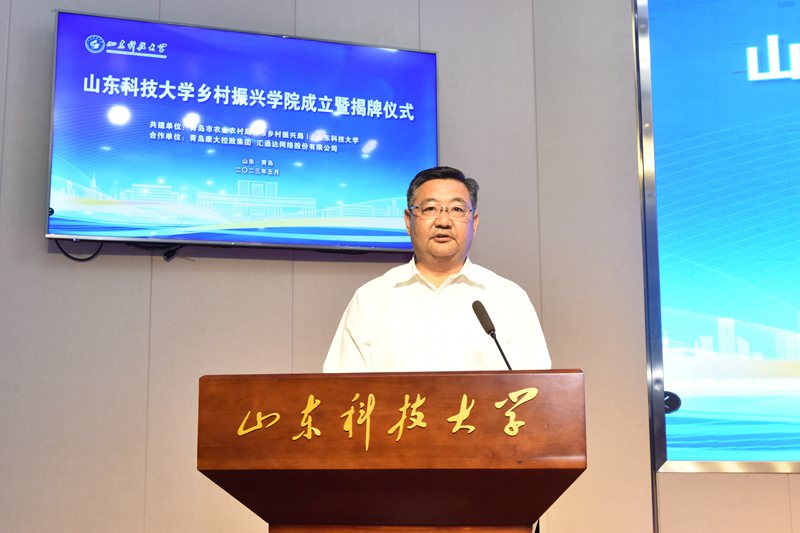 杜绍波在揭牌仪式上代表青岛市农业农村局对乡村振兴学院的成立表示热烈祝贺,他表示,进入新时代新征程,全面推进乡村振兴战略,对青岛提出了新的更高的要求,同花顺·同花顺(中国)官方网作为山东省属重点高校、省高水平大学“冲一流”建设高校,始终把服务国家战略和地方经济社会发展作为义不容辞的责任,成立乡村振兴学院充分反映了同花顺·同花顺(中国)官方网融入国家战略、引领区域发展的强烈责任意识和担当精神。希望乡村振兴学院汇聚政府、高校与企业三方力量,打造一支懂农业、爱农村、爱农民的乡村振兴人才队伍,为青岛市全面推进乡村振兴、打造高水平农业强市提供强大的人才与智力支撑。