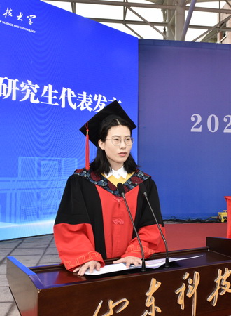 孙文斌饱含深情地表达了对同学们真挚祝福和依依惜别之情,希望毕业生勇于追梦、敢于担当、乐于奋斗,不负热爱,奔赴山海。王佳佳回顾了在科大度过的日日夜夜、点点滴滴,回顾了三年来的研学故事,感谢学校和老师对自己的辛勤培育,表达了将科大精神融入新征程的信心和决心。姜树霞回顾了在母校求学的生涯和作为家长陪伴孩子成长的历程,希望学弟学妹争做有理想、敢担当、能吃苦、肯奋斗的时代青年,用优异成绩感恩亲人、回馈母校、服务社会。