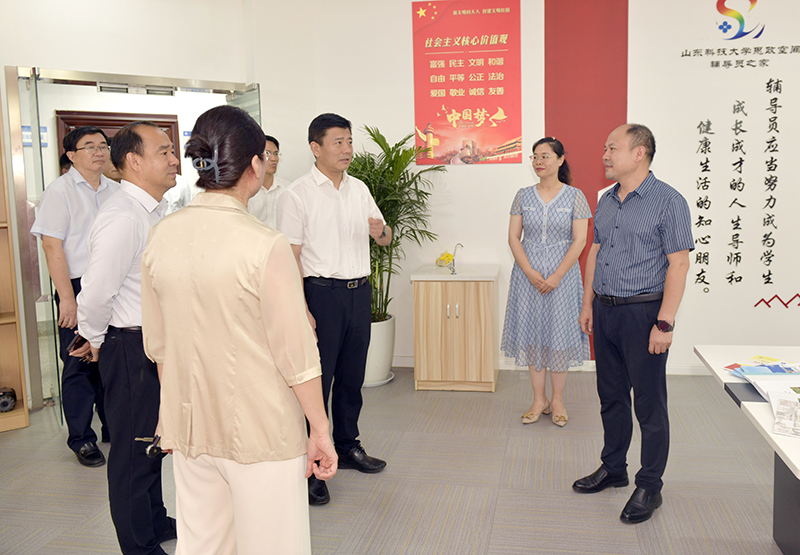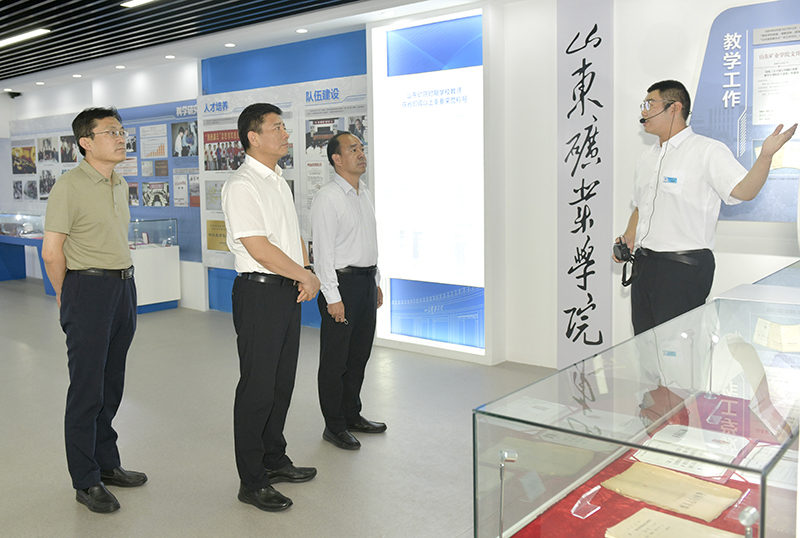 李明一行先后来到校史馆、矿山岩层智能控制与绿色开采国家重点实验室培育基地、矿山安全检测技术与自动化装备国家地方联合工程研究中心、工程实训中心和大学生活动中心等处实地查看,听取了学校领导、有关部门和实验室项目负责人的情况汇报,对我校近年来改革发展取得的成绩以及在山东省高等教育高质量发展中发挥的重要作用给予充分肯定。