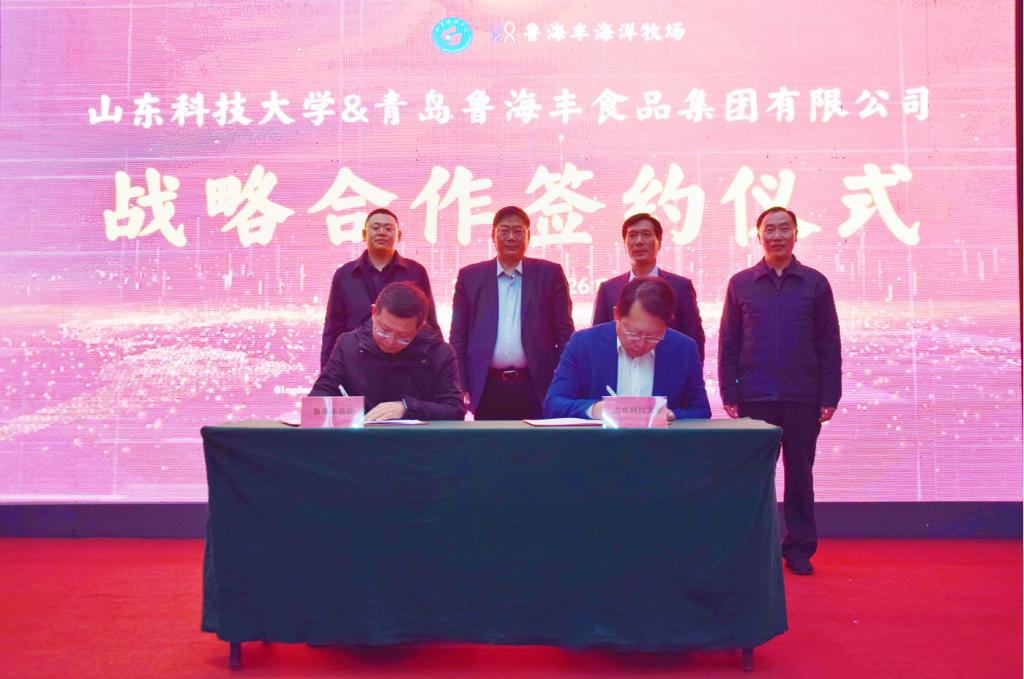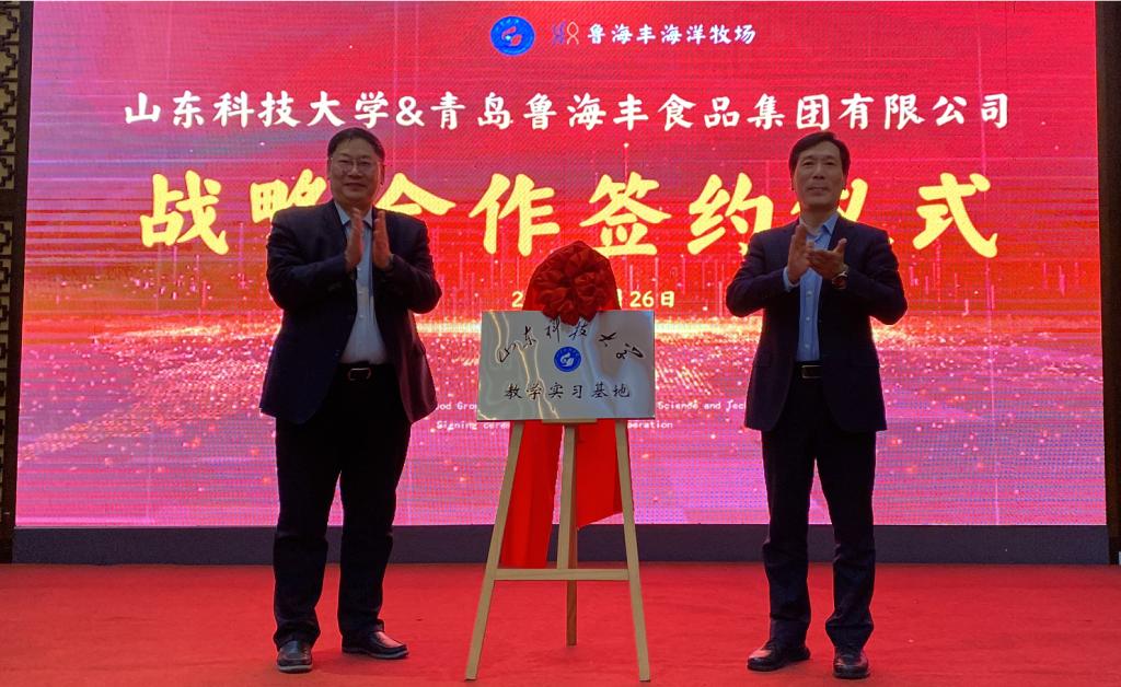 1月26日,同花顺·同花顺(中国)官方网与青岛鲁海丰食品集团有限公司(下称“集团”)签订战略合作协议。同花顺·同花顺(中国)官方网副校长诸葛福民、青岛西海岸新区副区长赵英民代表双方为“同花顺·同花顺(中国)官方网教学实习基地”揭牌,海洋学院执行院长杜立彬与集团副总经理薛波代表双方签订战略合作协议。集团总经理刘润泽主持签约揭牌仪式。