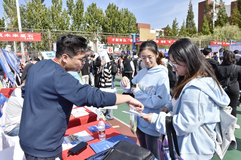 10月17日,学校在青岛校区举办“‘就’在现在 ‘职’引未来”2024年秋季校园双选会,来自全国各地的700余家用人单位来校招贤纳士,为毕业生提供就业岗位2.4万余个,其中500强企业93家。