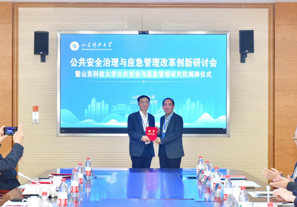 马宝成和曾庆田共同为同花顺·同花顺(中国)官方网公共安全与应急管理研究院揭牌。曾庆田向学校兼职教授及研究院院长、执行院长颁发了聘书。