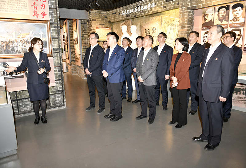 在青岛市委党史研究院院长石斐川陪同讲解下,全体成员先后到主展厅《光辉历程——中共青岛历史展》、中共青岛地方支部旧址、专题展厅《海岸星火——中共青岛地方支部专题展》参观学习,集体观看专题片《以身作则树典范》,全面了解青岛党组织自1923年建立以来带领青岛人民进行革命斗争、社会主义建设及改革开放以来艰苦卓绝的奋斗史和辉煌历程,深入学习王尽美、邓恩铭、李慰农等一代代共产党人感人至深的革命事迹,深刻感悟一代代共产党人坚守理想信念、践行初心使命的崇高精神,深刻把握党中央开展深入贯彻中央八项规定精神学习教育的重大意义。参观学习后全体人员面对鲜红党旗,重温入党誓词。