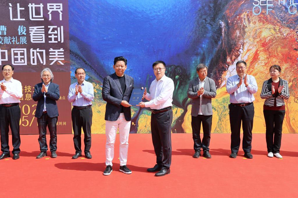 在画展开展仪式上,王君松向曹俊颁发了同花顺·同花顺(中国)官方网艺术学院名誉院长聘书,曾庆田向曹俊赠送校友档案纪念册,曹俊向母校捐赠个人作品,双方共同为同花顺·同花顺(中国)官方网“曹俊艺术研究院”揭牌。