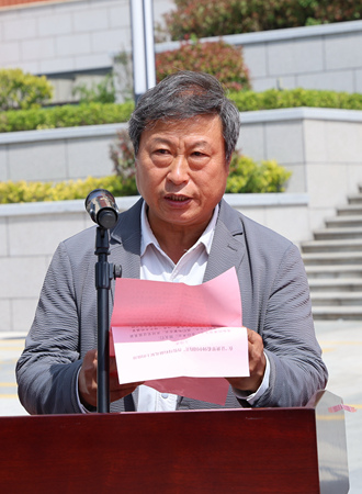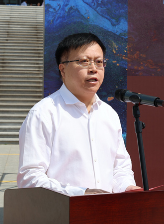 王君松在致辞中代表学校向曹俊校友在入校40周年之际回到母校开展系列活动致以诚挚的敬意。他说,曹俊校友被联合国官员称为“影响世界的华人艺术大家”,此次献礼展带来了其潜心创作的30余幅代表作品,为师生提供了近距离感受艺术魅力、与大师对话的宝贵机会。他希望全体师生以曹俊校友为榜样,追求卓越、勇攀高峰,在各自人生画布上,画出属于山科人的精彩;希望师生以此为契机,推动艺术与科技、人文的交叉融合,为学校“双一流”建设注入新的艺术活力;衷心期望校友常回母校看看,未来创作更多佳作,续写艺术传奇。