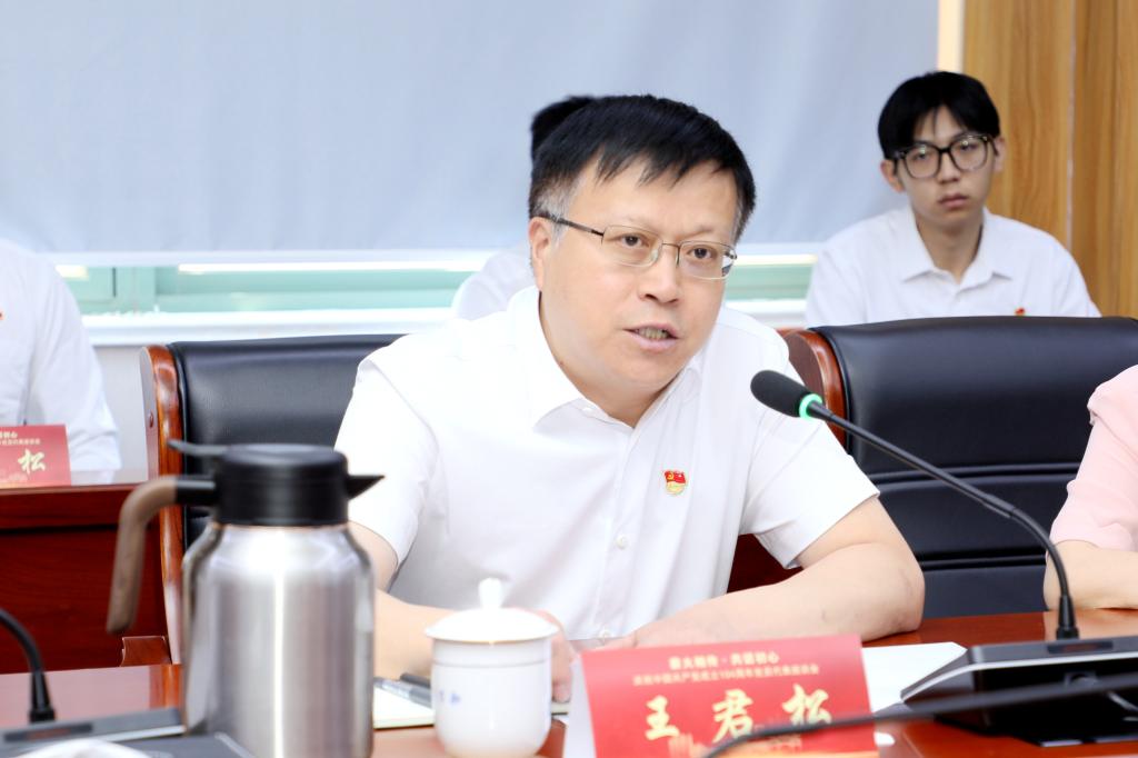 王君松向全校共产党员致以节日的问候。他指出,学校第四次党代会明确了“一三六八十”战略布局,擘画了学校高质量跨越式发展的宏伟蓝图,广大党员要更加紧密地团结起来,以习近平新时代中国特色社会主义思想为指导,以庆祝党的104周年华诞为新的起点,不忘初心、牢记使命,踔厉奋发、勇毅前行,以更加昂扬的姿态、更加扎实的作风、更加优异的成绩,奋力谱写学校高质量发展新篇章。