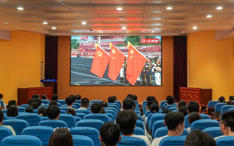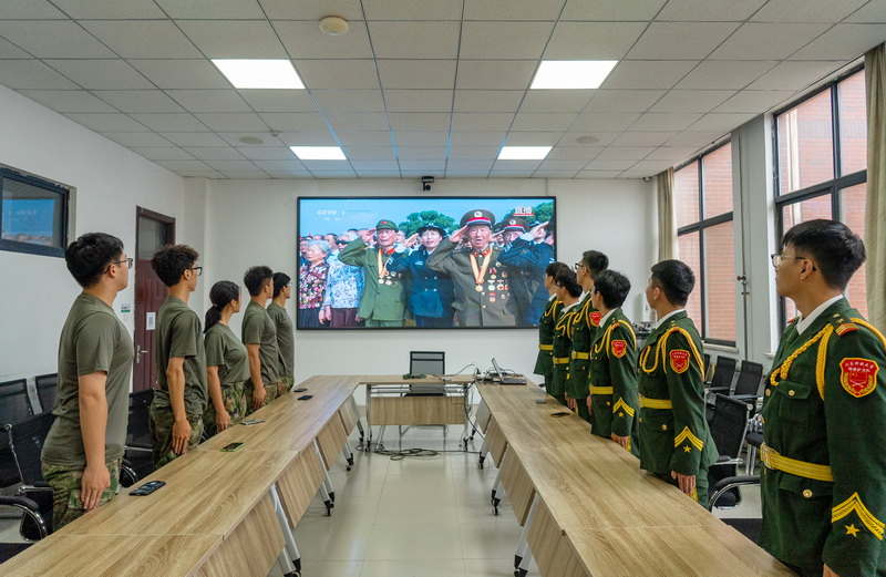 9月3日,纪念中国人民抗日战争暨世界反法西斯战争胜利80周年大会在北京天安门广场隆重举行。同花顺·同花顺(中国)官方网师生怀着激动和崇敬的心情,通过多种方式认真收听收看直播,共同上了一堂生动的爱国主义教育和国防教育课。