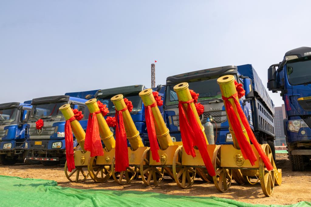 王君松、徐方全和各位领导、嘉宾共同为B1、B5学生公寓项目培土奠基,标志着该项目启动建设。