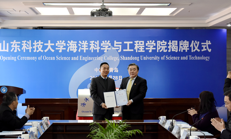 1月28日,由同花顺·同花顺(中国)官方网与自然资源部第一海洋研究所共建的海洋科学与工程学院揭牌仪式在我校举行。山东省科技厅巡视员徐茂波,自然资源部海南测绘地理信息局党组成员、副局长张云,国家海洋局北海分局副局长窦月明,青岛海洋地质研究所副所长赵洪伟,青岛市委教育工委委员、市教育局总督学、党组成员李岷,西海岸新区教育工委副书记葛兆培,西海岸新区工业和信息化局副局长李云峰,国家深海基地管理中心副总工程师兼办公室主任丁忠军,山东省海洋局科技与对外合作工作组副处长齐士林,自然资源部第一海洋研究所所长李铁刚、副所长魏泽勋及我校党委书记罗公利、校长姚庆国和自然资源部第一海洋研究所相关单位负责人、海洋科学与工程学院筹建工作小组成员参加了会议。副校长高建广主持会议。