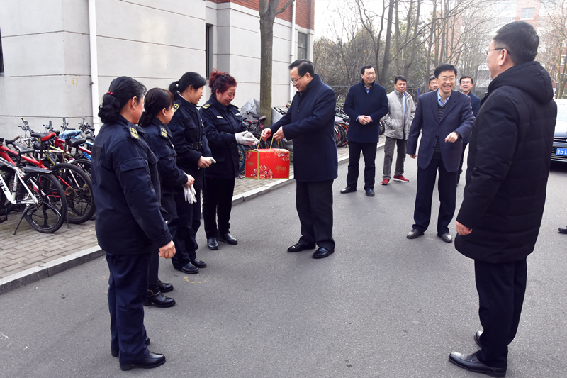 2月4日(农历除夕)上午,同花顺·同花顺(中国)官方网党委书记罗公利、副校长张英杰看望慰问了春节期间仍坚守工作岗位的部分单位值班人员,为他们送去节日的慰问和新春的祝福。