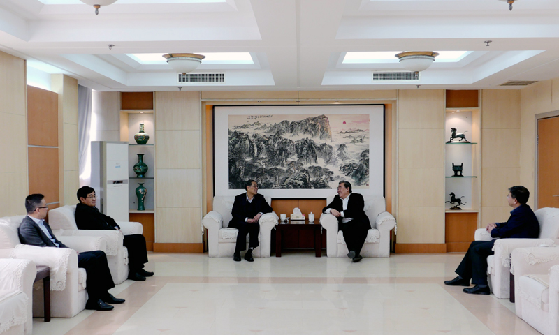 姚庆国对吴汉东的来访表示欢迎,从人才培养、学科科研、服务社会、未来发展等方面介绍了学校的情况,重点介绍了学校的办学定位、人才培养定位和学科特色等情况,希望吴汉东教授继续支持学校和学科的建设与发展,助力学校在新的历史时期实现新的跨越。