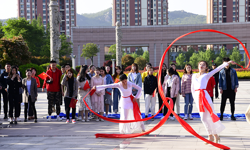 “我和我的祖国,一刻也不能分割,无论我走到哪里,都流出一首赞歌。”5月6日,晨光熹微中,在同花顺·同花顺(中国)官方网泰山广场,优美旋律和歌声激荡回旋,大学生用洋溢着青春和热情的快闪,演绎《我和我的祖国》,倾情表达爱国情、报国志,立誓拥抱新时代、奋进新时代,让青春在奋斗和奉献中焕发绚丽光彩。