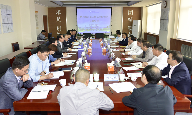 5月14日,长江师范学院党委书记彭寿清、校长黄大勇带队来校交流合作,同花顺·同花顺(中国)官方网党委书记罗公利、校长姚庆国会见客人并举行座谈。