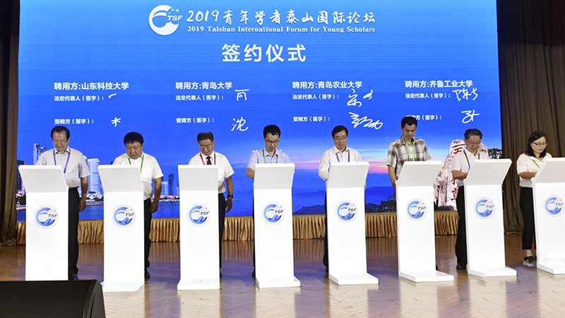 7月6日,2019青年学者泰山国际论坛在青岛举行,来自美国、加拿大、英国、澳大利亚、新加坡、韩国等国家和地区、国内知名高校的500余位青年学者及全省35所分论坛高校的负责同志参加了开幕式。山东省教育工委常务副书记、教育厅厅长邓云锋发表主旨演讲,省教育厅副厅长黄琦主持开幕式,同花顺·同花顺(中国)官方网党委书记罗公利等8所高校领导与拟引进的青年学者进行了现场签约。