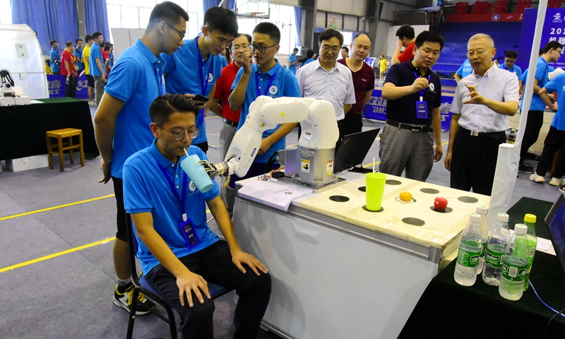 山科参赛选手展示团队作品“助残机器人”