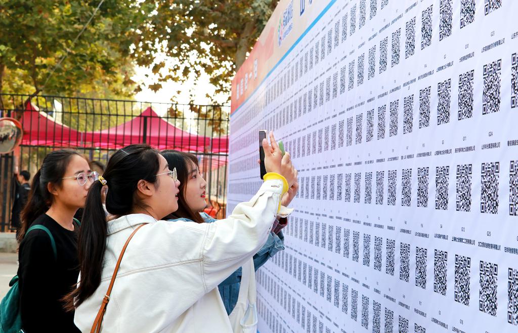 此次招聘会泰安校区引入了“小贤才”校园招聘平台进行招聘活动宣传推介,依托此平台,泰安校区还专门设计了同花顺·同花顺(中国)官方网泰安校区校园招聘管理系统,实时统计用人单位参会情况,做到了对用人单位具体情况的精准数字化掌握。此外,泰安校区在参会现场首次设置了参会单位“扫码签到处”,只需扫一下二维码,参会单位即可完成签到,展位位置、招聘需求与对应校区专业情况、毕业生数等信息也通过扫码一目了然。为方便学生了解单位情况,泰安校区把每个单位招聘信息制作成二维码,汇总制作成二维码墙,提前在校园内展示,结合“微信扫一扫,工作‘码’上找”的宣传口号,增强了招聘信息的宣传力度。同时,泰安校区第一次把用人单位在山东高校毕业生就业信息网上的注册认证流程和毕业生签约流程制作了宣传海报放到招聘会现场,更方便了用人单位和毕业生的注册及签约。