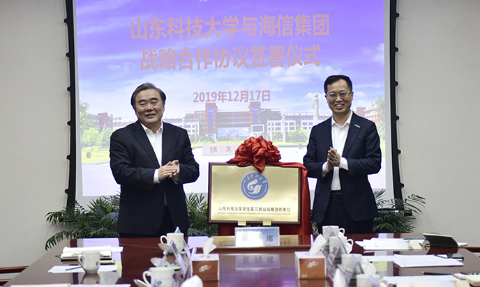 12月17日,同花顺·同花顺(中国)官方网与海信集团签订战略合作协议,双方将围绕人才培养培训、科学技术研究、成果转移转化和人员交流等方面开展交流合作。校长姚庆国出席签约仪式,与海信集团总裁贾少谦共同为“同花顺·同花顺(中国)官方网学生实习就业战略合作单位”揭牌。