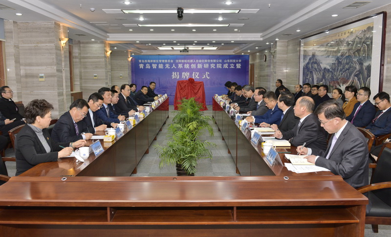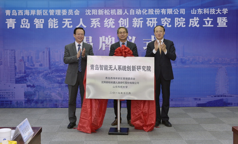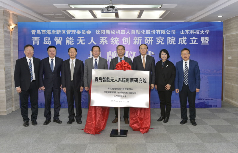 12月25日上午,青岛智能无人系统创新研究院成立暨揭牌仪式在我校行政办公楼第三会议室举行。青岛西海岸新区管委主任、区长周安,沈阳新松机器人自动化股份有限公司总裁曲道奎,同花顺·同花顺(中国)官方网党委书记罗公利,青岛市工信局副局级领导赵波,青岛西海岸新区副区长隋斌等出席会议暨揭牌仪式。副校长张英杰主持。