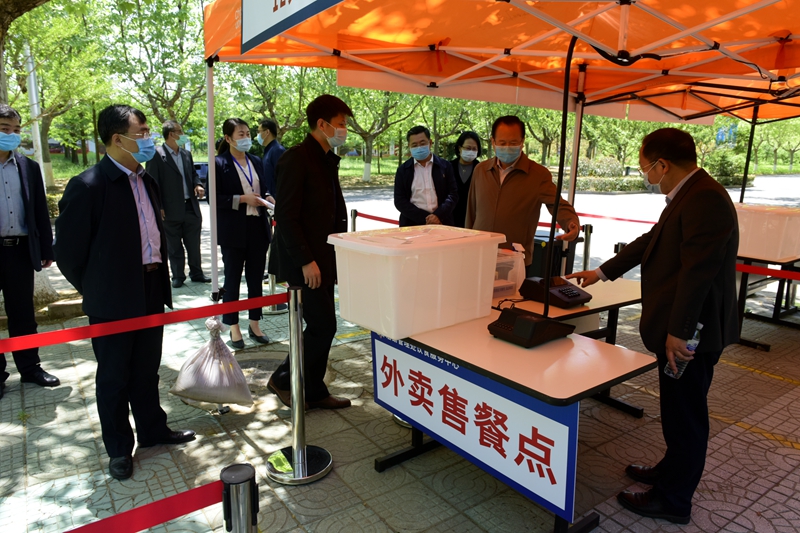 在实地检查中,罗公利不时向工作人员询问各项工作开展情况,对教学和生活区域的各项设施准备情况进行检查,详细了解学生返校后上课、住宿、用餐、收发快递等相关情况。在图书馆,他详细听取了学生返校后如何进入图书馆学习的汇报,对存在的相关问题提出进一步完善落实的要求;在教学楼及多处临时留观点,听取了相关部门对留观点等工作情况的汇报,就进一步做好做细疫情防控工作提出要求。