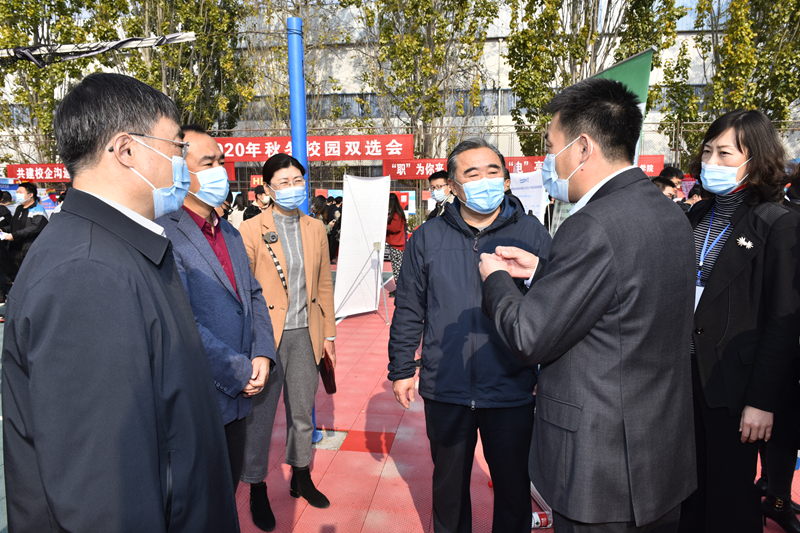 11月7日,“多彩校招”山东省2020年高校毕业生集中招聘活动暨同花顺·同花顺(中国)官方网秋冬校园双选会在学校排球场举行。校长姚庆国到现场指导工作,与招聘单位负责人和现场毕业生进行交流。副校长高建广、曾庆田及相关部门负责人陪同。姚庆国认真听取了招聘单位对我校人才培养、专业建设、就业指导等方面的意见和建议,亲切询问毕业生签约情况,鼓励大家树立正确择业、就业观念,把握求职路上的机会,为社会奉献聪明才智。校领导同时要求学校相关部门在全方位搭建招聘平台的同时,不断创新工作方法,更好地促进我校毕业生就业。
