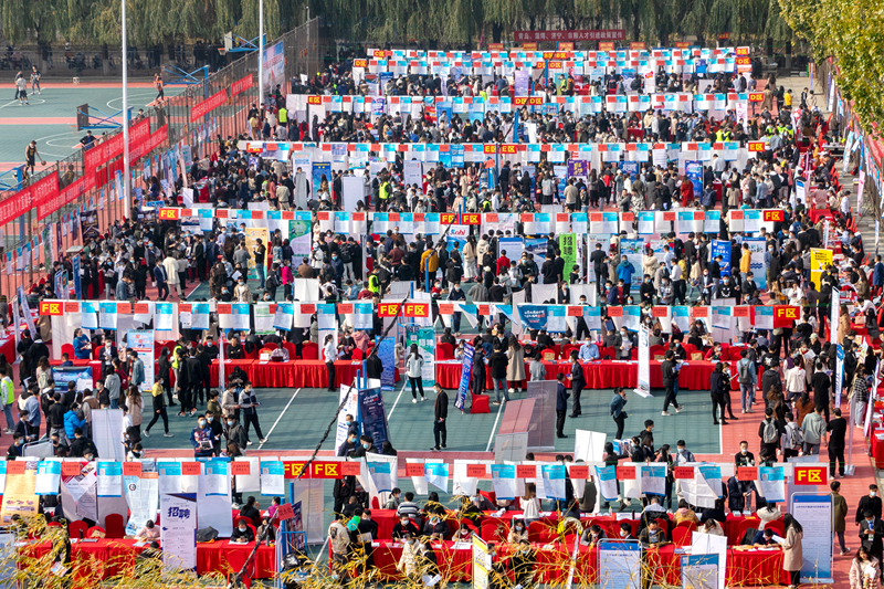 “学校自9月7号恢复校园招聘以来,用人单位通过线上预约、线下招聘,先后举办了中煤科工、山东移动、淄博人才直通车、中铁、中建、中石化、中国水利水电、中国电建、中交集团等大型国企、央企校园专场招聘会。截至目前,已举办360余场校园专场招聘会,1800余名毕业生与用人单位达成就业意向。”学生工作处副处长孔环介绍道。