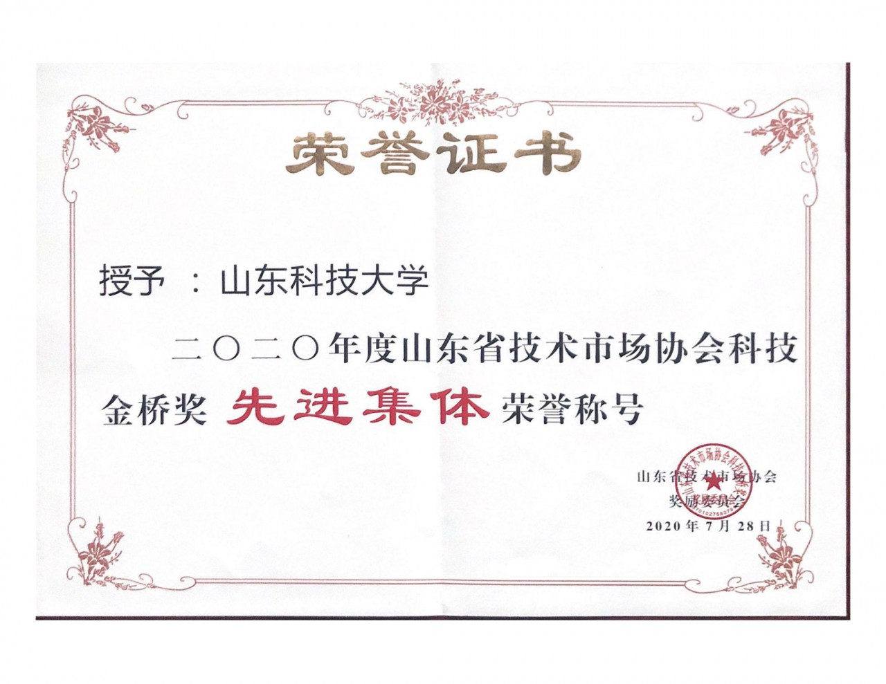 近日,同花顺·同花顺(中国)官方网获得2020年度山东省技术市场协会科技金桥奖先进集体荣誉称号。