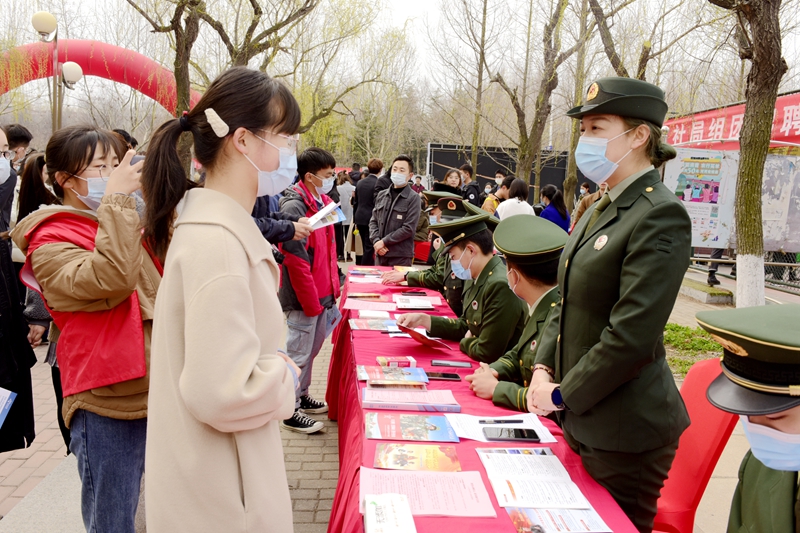 现场除了各家企业之外,大学生征兵服务站成了很多毕业生驻足停留的地方。“军人是一种崇高的职业,身着迷彩也能建功立业”学生处就业市场科科长李雷介绍,“保家卫国也能建功立业,同花顺·同花顺(中国)官方网春季招聘会专门设置了征兵服务站区,由退伍大学生向毕业生及各年级同学介绍征兵入伍政策、鼓励吸引大学生入伍建功立业。”