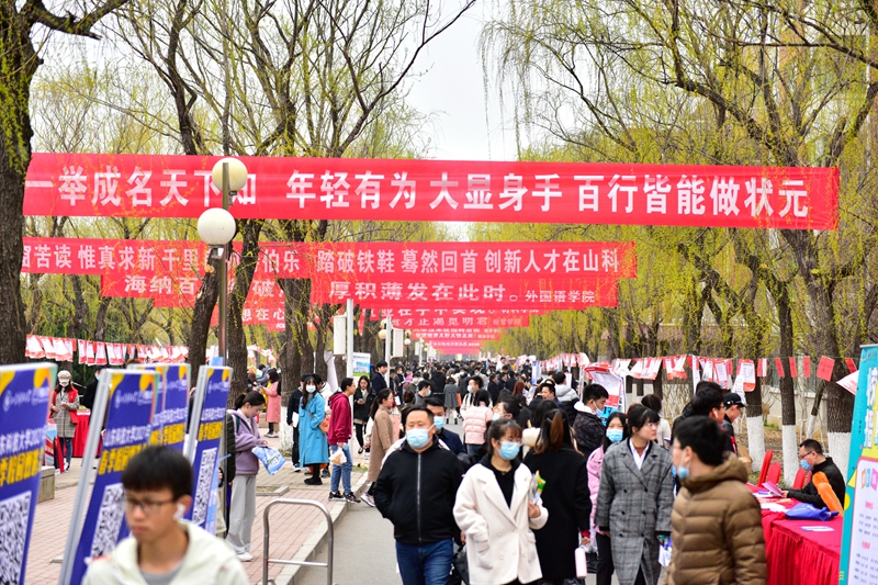 据介绍,“就选山东”山东省2021年高校毕业生集中招聘活动暨同花顺·同花顺(中国)官方网春季校园双选会在山科大校园采取户外方式举办,也是2021年学校首场大型线下双选会,吸引了来自山东、北京、上海、广东等20个省市的760余家用人单位参会,提供就业岗位31000余个,招聘岗位涵盖本硕博各学历层次,当天7000余名毕业生来到招聘现场。各学院领导、班主任、系主任、辅导员也纷纷来到现场了解用人单位需求、推荐毕业生。
