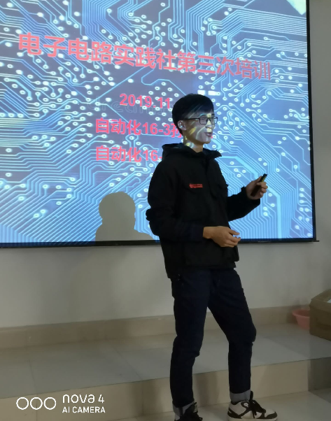 他还是电子电路社的社长。累计开展培训30余次,累计培训200余名会员,在他任职期间社团被评为“校明星社团”。