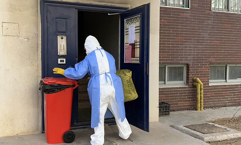 强制隔离教工家庭的生活垃圾,由后勤保障组工作人员按照医疗防护要求进行收取处理。后勤保障组工作人员说:“隔离的是疫情,割舍不断的是大家的亲情。非常时期,我们要做好服务保障工作,把学校领导的关心和温暖送到隔离教工家中、心中。”