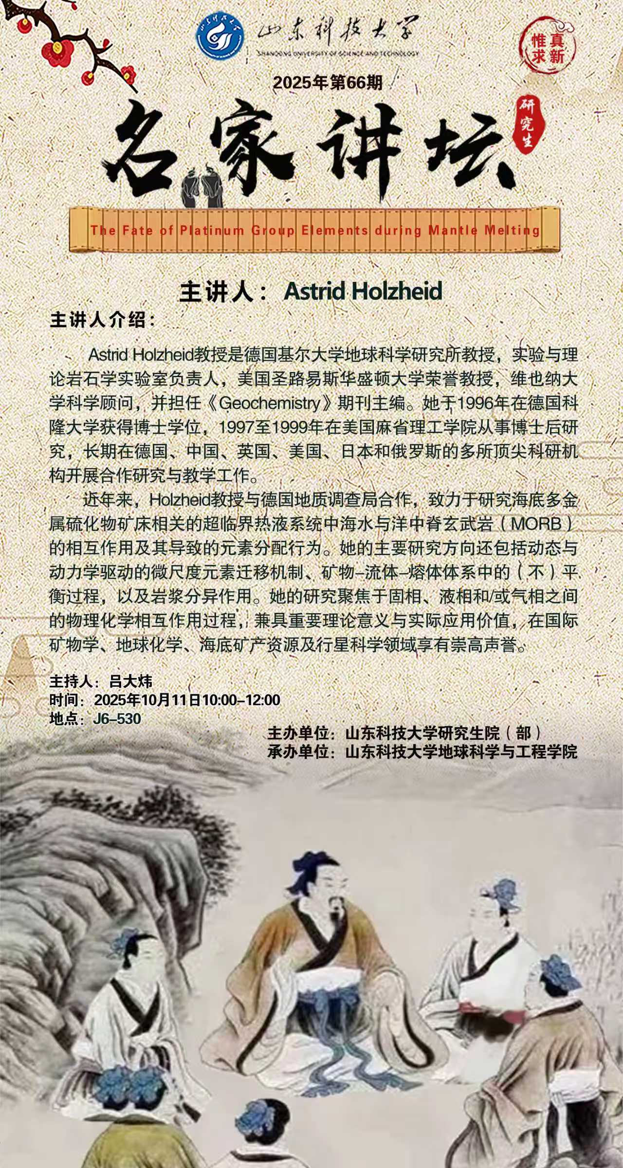 “名家讲坛”2025年第66期:The Fate of Platinum Group Elements during Mantle Melting (总1071期)